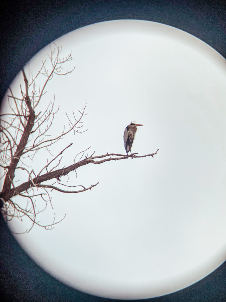 I nod, and he cuts the water with a paddle, bending the boat to the left. On the island stands a grouping of cottonwood trees claimed by blue herons. The massive birds on stilt legs returned a month ago. They spent several days perched on peripheral trees, strategizing a takeback of their long-held nests.