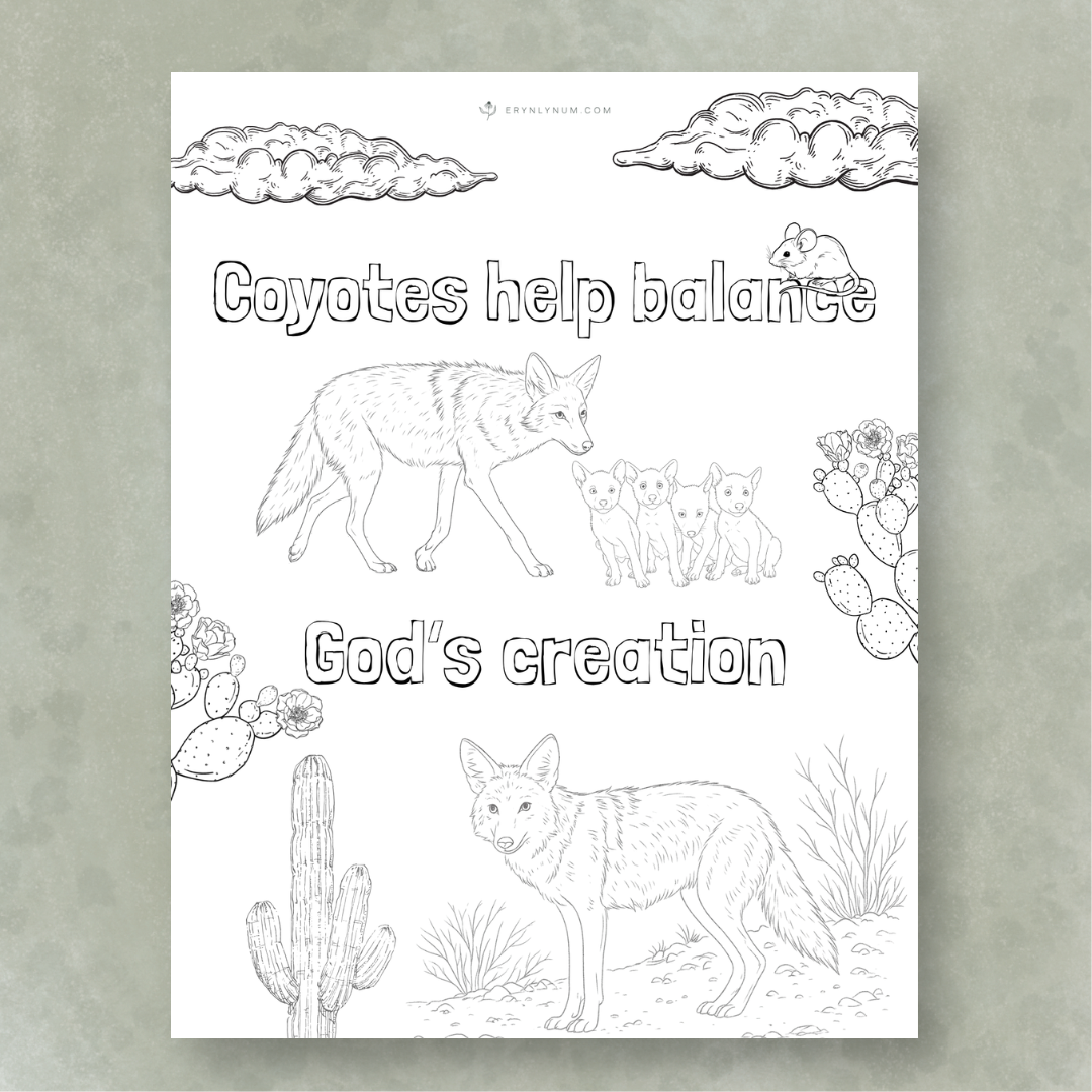 God called the wild animals good. Genesis 1:24–25 tells us God made the tame animals, the small crawling animals, and the wild animals—and “God saw that this was good.” We can still see that goodness in the way coyote parents care for their young and in how coyotes help balance nature.