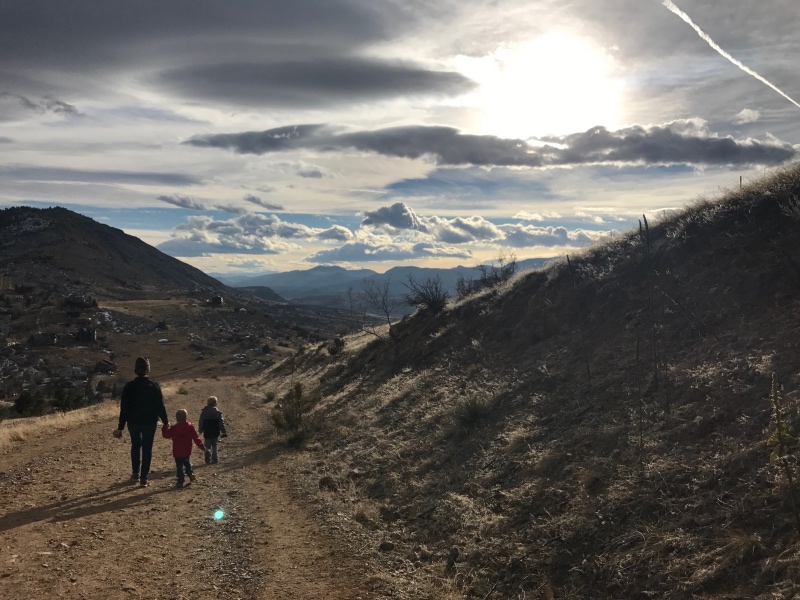 Only a day after that conversation in the coffee shop we found ourselves hiking a local trail with a group of friends—four families out enjoying the Colorado January sunshine. We made it a quarter of the hike before our two-year-old began lagging behind. He lifted his arms up to me to be carried. I glanced down at my very pregnant belly and told him No. He turned to Daddy. Daddy encouraged him to keep walking. The four-year-old gave up somewhere around midway. We thanked our friends for the hike and we turned around, heading back down the mountain, while friends and their bigger kids forged ahead to the top.