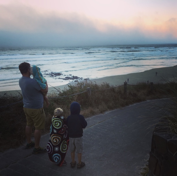 We were excited to be on our last long stretch of driving for a while, and even more excited to run into very little traffic as we made our approach upon the Pacific. After fifteen hundred miles of sage brush and stocky pine, we finally came upon moss-covered trees reaching high to the heavens. The ones my husband grew up playing beneath, and the ones we have longed to introduce our children to. Four days after leaving home, we pulled up to the shore of the Pacific just in time for sunset.