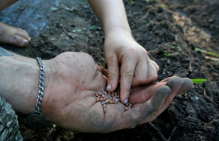 I remember months ago when we placed our first seedlings into the ground, using our hands to gather up the soil into little mounds, and then pushing our forefingers and middle fingers to dig out a small hole in the mounds, just large enough to place the clump of roots into the ground. We would then gently press soil around the base of the seedling, nesting it within the ground.