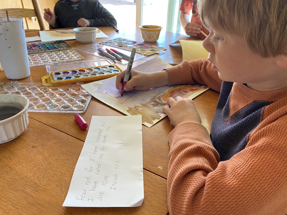 My mom was scheduled to stay with us for five weeks this spring. There were tears at the airport yesterday when we dropped her off to go home four weeks early. However, she set us up well by leaving us with supplies to begin planting our garden. We’ll start this week by planting seedlings indoors. This will keep us busy and focused on bringing life. As long as I can keep the plants alive, our plan is to deliver them to neighbors in coming months. Spring time and planting have an incredible therapeutic effect. And of course, this counts as school! And well, we’re all homeschooling now.