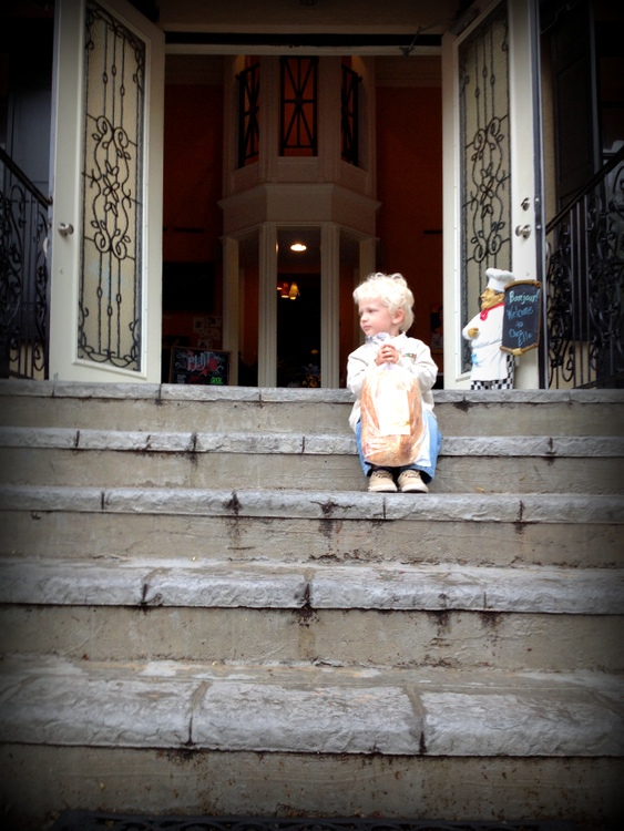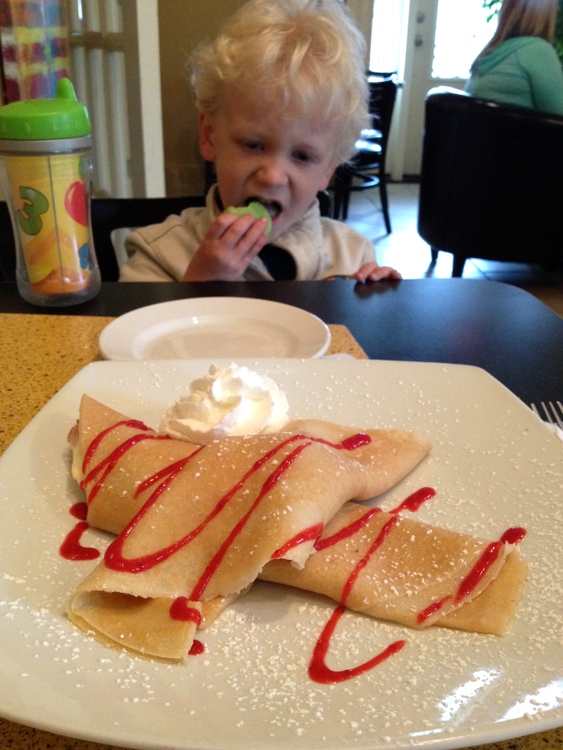 We had passed by the cement steps framed in black ornamental metal fencing a few times before, always glancing in the inviting doors and suggesting that we stop in one day. Today was that day. With my little toe-head in tow, and no schedule to abide by, we walked up the steps to the old theatre-turned-creperie and coffee house.
