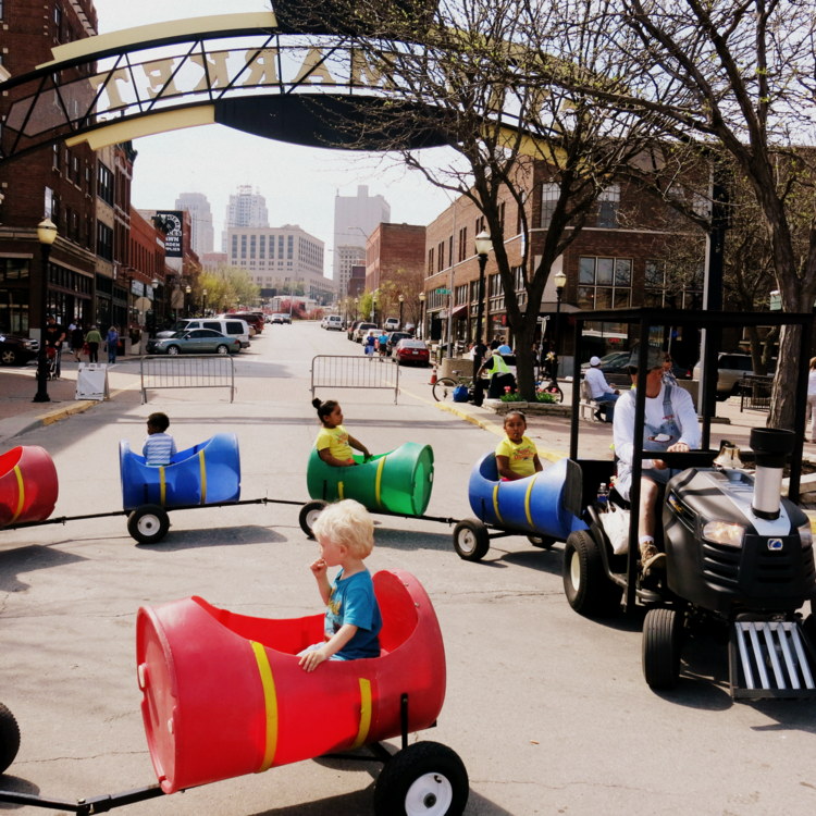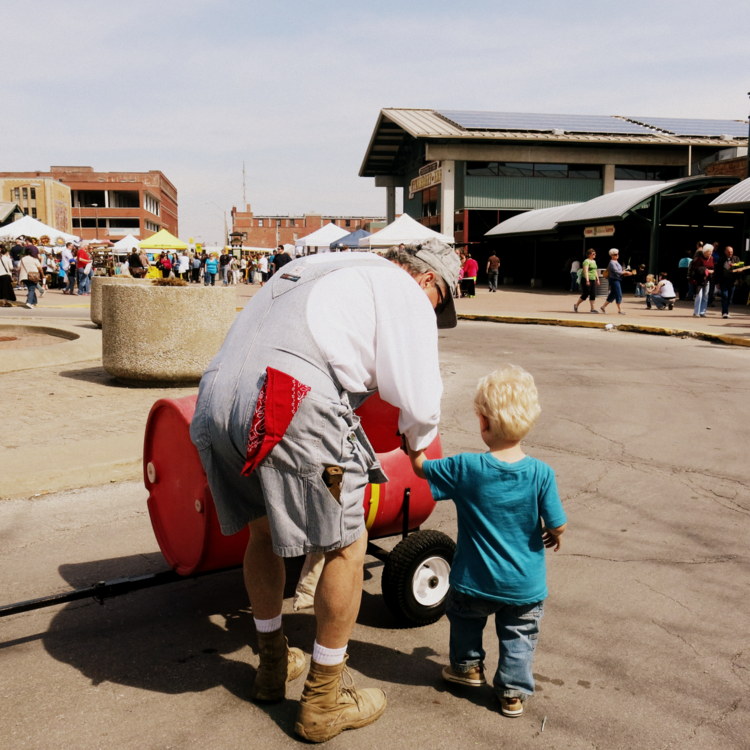 The little boy and his mom were walking hand in hand through the market on an impossibly beautiful summer morning, and had passed by the favorite spot of the market for every little boy and girl: the train ride. The train is constructed from a decorated lawn mower, pulling a succession of brightly painted plastic barrels that have been turned on their sides and cut at a curve to create a sort of seat.
