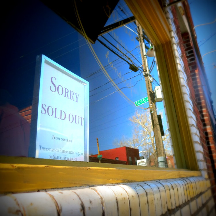 In this case, there is a few brick walls composing a small room with a wood burning stove taking up the entirety of one wall. Another wall stands background to a small counter space, the wall itself holding some simple rustic wooden shelves, home to the loaves of bread baked that morning, all of them beautifully unique and lacking a sense of uniformity. The shop is open only three days of the week, and the loaves are sold until gone, which indicates that it’s then time to close shop and hang the “Sold Out” sign on the glass door framed in pale yellow.