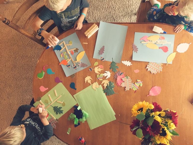 “Feee-ish! Fee-ish!” I hear his toddler brother call from the kitchen. I wander in to spot him sticking fish stickers to paper. “Good job, Buddy.”